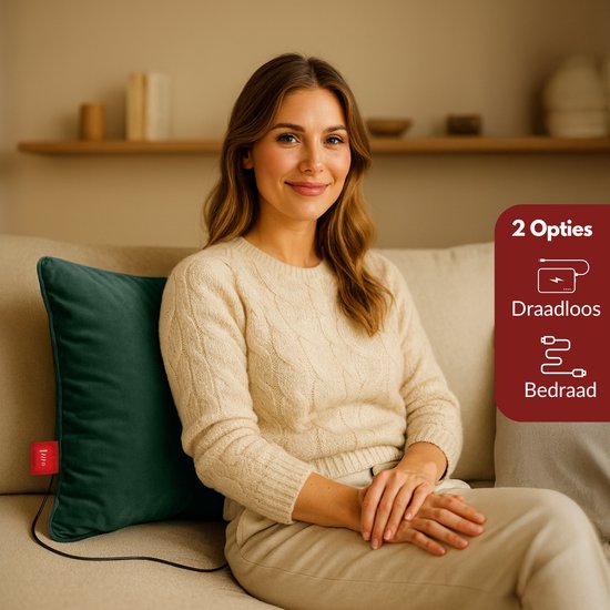 Le coussin chauffant est doté d'un compartiment discret pour powerbank dans le coussin intérieur. Dézippez la housse en velours pour y accéder et connectez le powerbank avec le câble fixe de ce produit. De cette manière, vous utilisez le coussin sans fil, sans câbles visibles et sans sentir le powerbank lorsque vous êtes allongé. Vous préférez une connexion directe au réseau électrique ? Utilisez alors le long câble fourni et raccordez-le à l'extérieur du coussin.