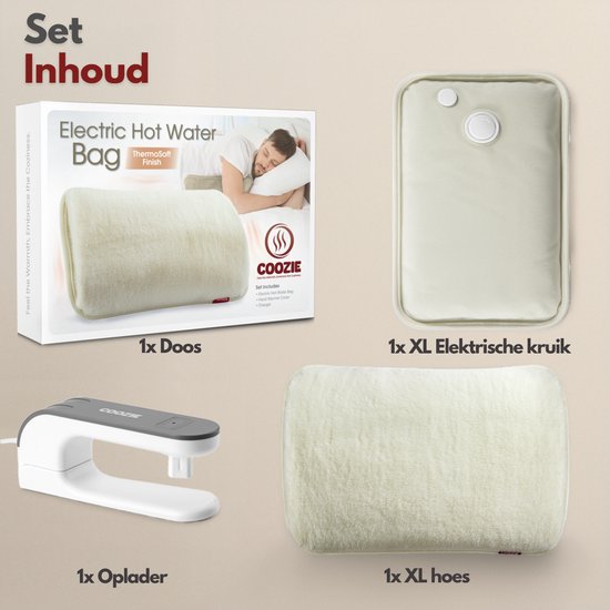 Avec la cruche électrique Coozie, vous profiterez de 2 à 4 heures de chaleur soutenue sans couverture, et avec la couverture incluse, cela peut même aller jusqu'à 8 heures de chaleur. Parfaite pour une utilisation au lit ou sur le canapé, elle vous permet de profiter de la chaleur toute la soirée. Après utilisation, il suffit de réchauffer la bouillotte dans la station de chauffage pour... la prochaine fois.