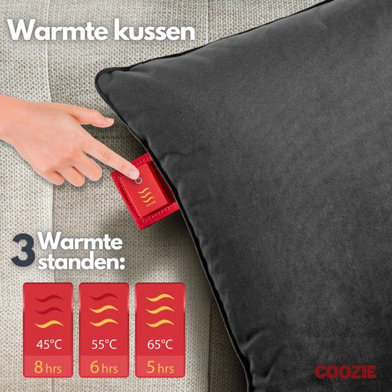 Coozie Heat Pillow Grey Velvet - Rechargeable électriquement - Oreiller chauffant sans fil - 45 x 45 cm