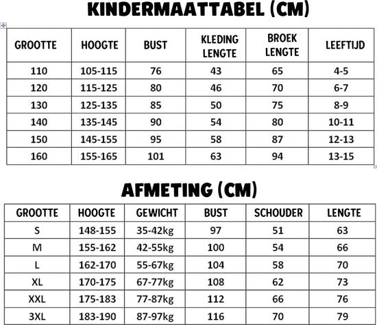 Disponible en tailles enfant et adulte.Notre tableau de tailles complet, avec des tailles allant de 110cm à 160cm pour les enfants et de S à 3XL pour les adultes, vous aide à choisir la taille parfaite pour un look élégant et confortable.