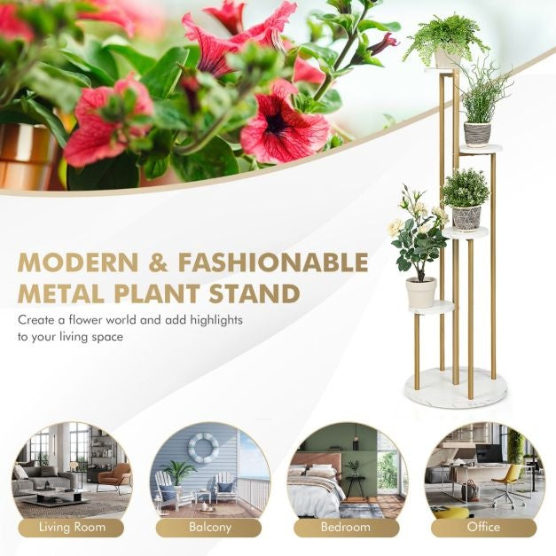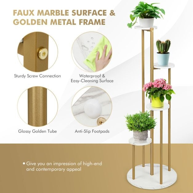 【Structure haute et basse avec 4 Basse】Le support de plantes d'angle adopte une structure haute et basse à 4 couches qui permet à toutes les plantes d'absorber suffisamment de lumière du soleil pour une meilleure croissance. De plus, il n'occupe qu'un coin de votre pièce et offre 4 niveaux pour exposer vos belles plantes, ce qui ne prend pas beaucoup d'espace au sol. 【Conception multifonctionnelle】Le support à 4 niveaux pour plantes d'intérieur peut être utilisé pour présenter des succulentes, des jonquilles, des cactus, des roses, des lys, des tulipes et bien plus encore. En outre, il peut également servir d'étagère de rangement dans le couloir, d'étagère pour les articles de toilette dans la salle de bain ou d'étagère d'exposition pour présenter votre artisanat et vos œuvres d'art. 【Moderne & ; Style à la mode】L'étagère de présentation de plantes a un cadre en métal doré et une surface en marbre artificiel, ajoutant un style élégant et moderne à votre maison. Et il peut être largement utilisé dans le salon, la chambre à coucher, le balcon, le bureau, la réception, l'hôtel, le café, le restaurant, et plus encore. 【Easy Maintenance & ; Assembly】Les panneaux en bois sont fabriqués à partir de panneaux MDF plaqués de première qualité qui sont résistants aux rayures, lisses et imperméables pour un nettoyage facile. De plus, le support de plantes en métal est facile et rapide à installer grâce aux instructions faciles à lire. Il ne pèse que 10 kg, ce qui vous permet de le déplacer sans effort.