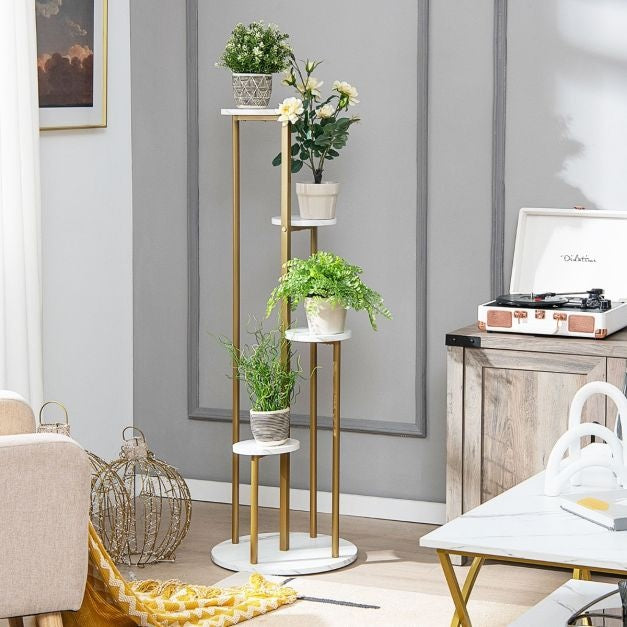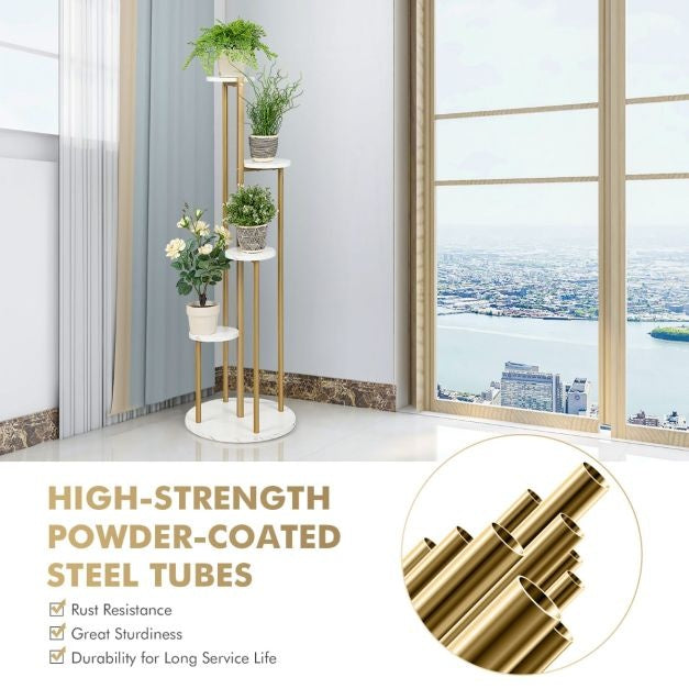 Porte-plantes en métal Coast - Moderne - Imitation Marbre - 40x40x122,5cm - Blanc et Or