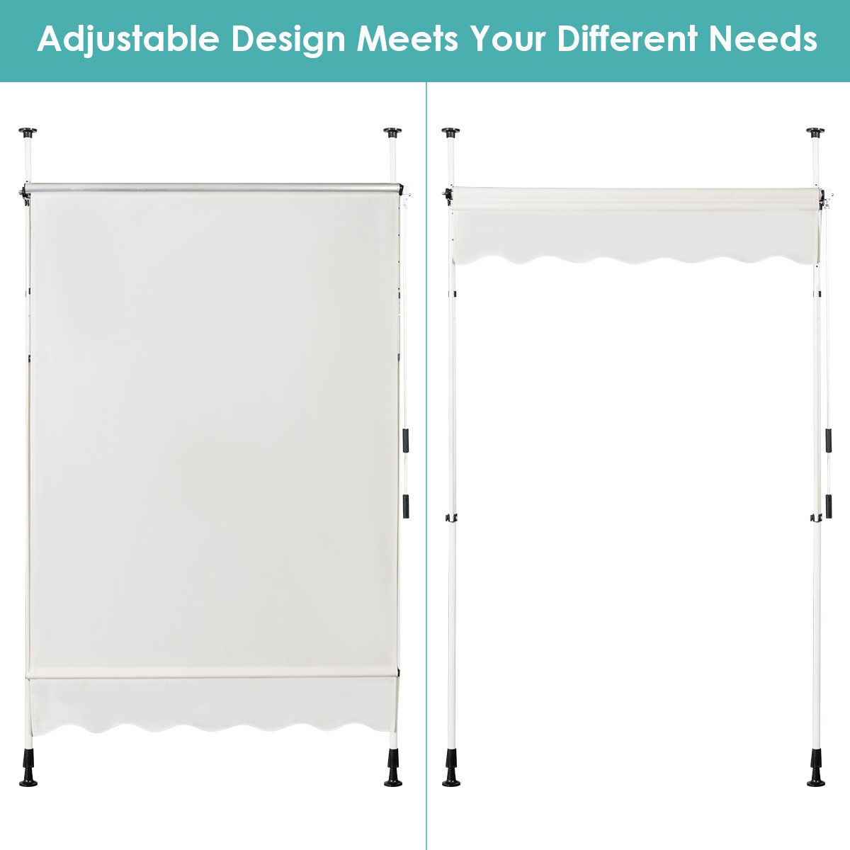 Matériaux bien sélectionnés: Construit avec un cadre en aluminium robuste, notre store extérieur est suffisamment durable pour assurer une longue période de vie. Chaque partie est fermement reliée pour former une structure stable qui fournit un soutien solide pour résister à une certaine échelle de vent. Et avec le tissu Oxford de première qualité qui est résistant aux intempéries, cet auvent résiste à la décoloration, à l'humidité et à la poussière.