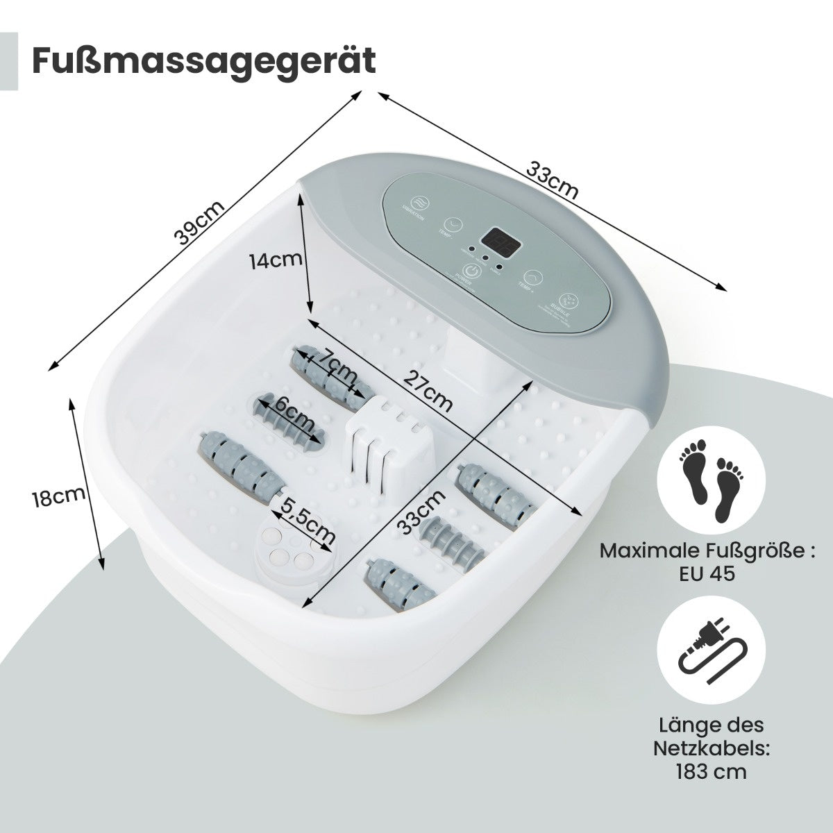 Données techniques : couleur : couleur : pp Chaque rouleau court : 6 cm diamètre de la pierre de pédicure : 5,5 cm longueur du câble d'alimentation : 183 cm pointure maximale : 45 tension : 220-240V ~ 50-60Hz performance : 500wnetto Poids : 1,5 kg Poids brut : 2 kg fourniture : 1 x empreinte1 x perle de massage1 x pierre de pédicure1 x instructions de montage