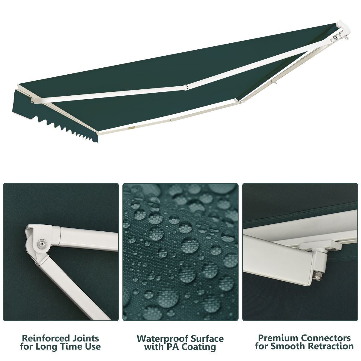 coast 4 x 2,5 m store de terrasse extensible - vert - armature en aluminium - manivelle manuelle