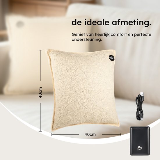 Coussin chauffant - 3 niveaux de chaleur - Coussin chauffant rechargeable - 10k mAh Powerbank - Sans fil - Coussin chauffant - 40 x 40 cm - Bouclé Off-white - Saaf Comfort