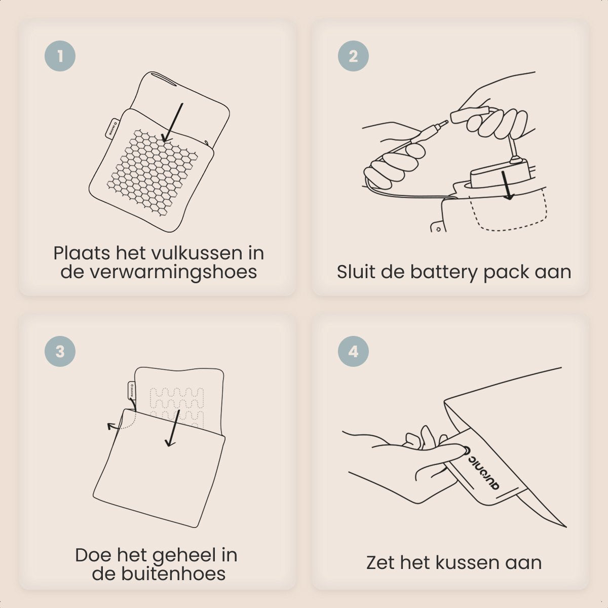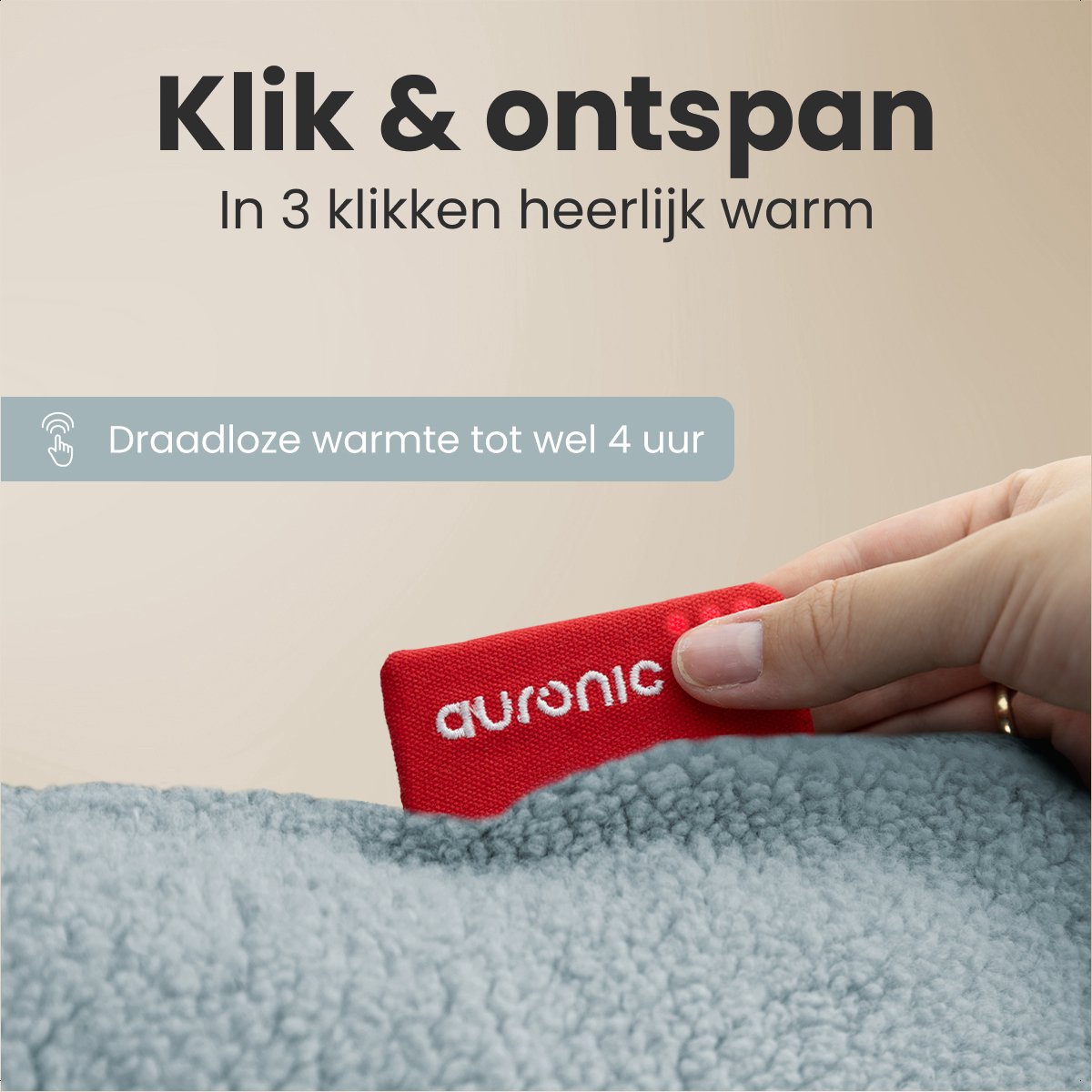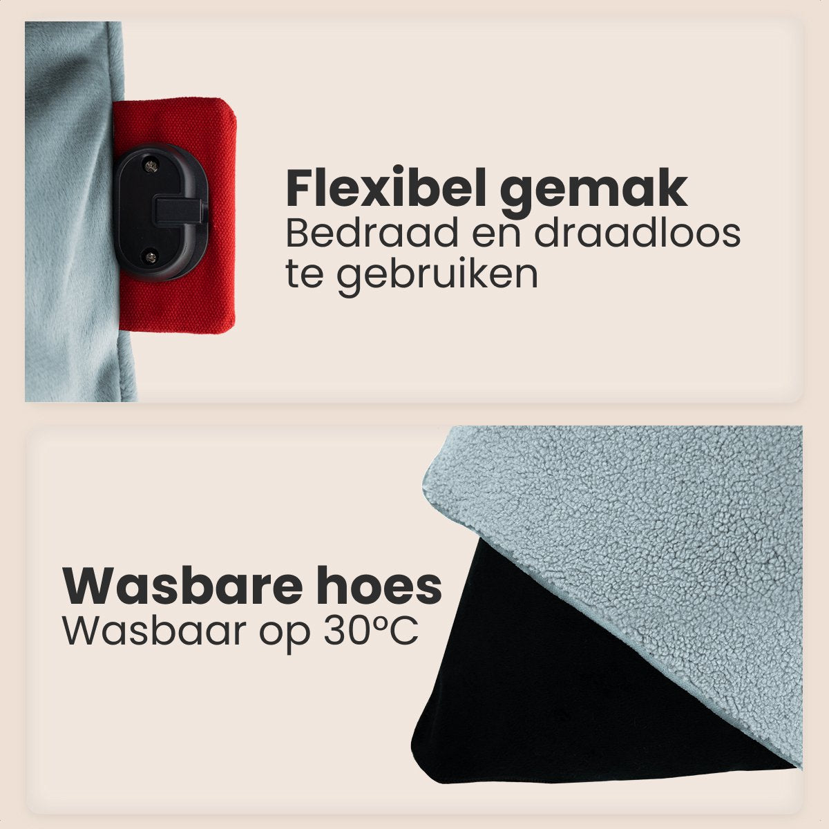 Grâce à la batterie intégrée de 10 000 mAh, vous utilisez le coussin entièrement sans fil. En outre, vous pouvez également charger le coussin pendant son utilisation, de sorte que vous n'êtes jamais privé de chaleur. Avec trois niveaux de chaleur réglables, vous pouvez facilement choisir la température qui vous convient le mieux.