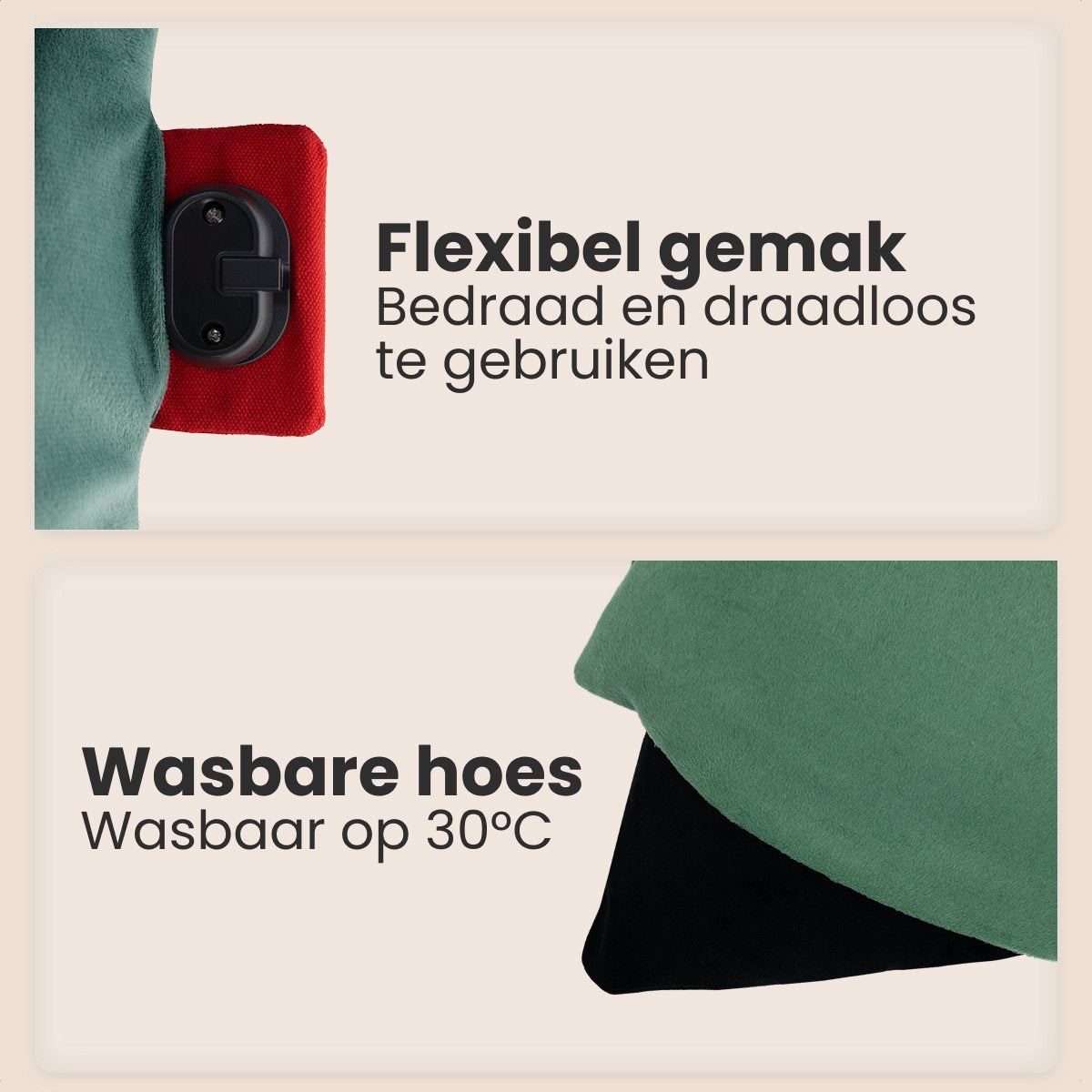 Auronic Heat Pillow - Classic - 45x45 - Sans fil - Rechargeable - Oreiller électrique - Infrarouge - Vert pastel