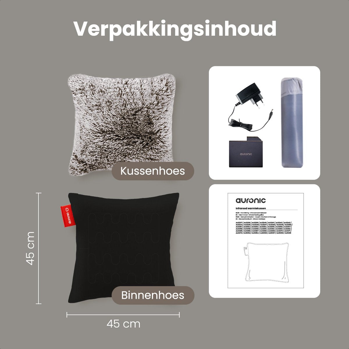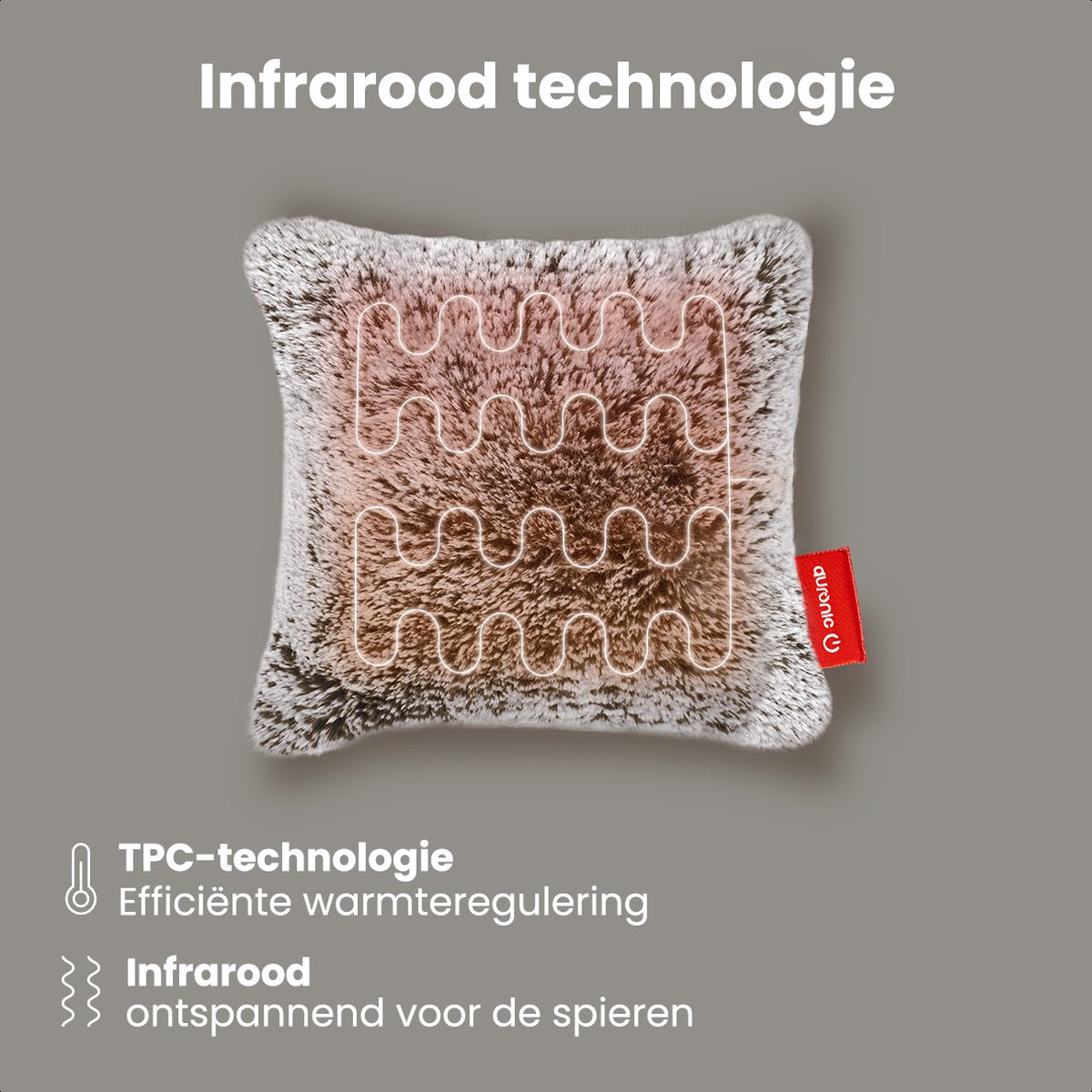 Oreiller chauffant Auronic - Teddy - 45x45 - Rechargeable - Oreiller électrique - Infrarouge - Gris