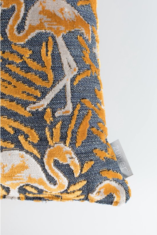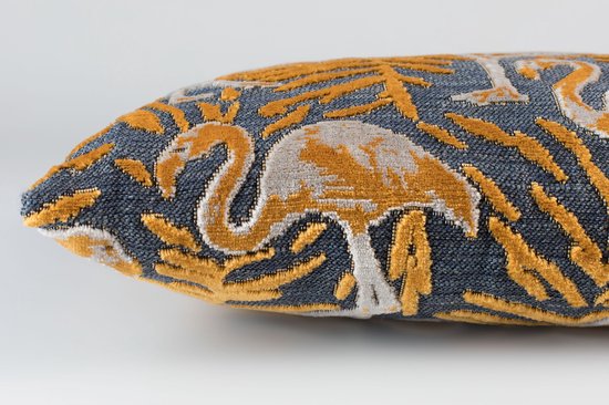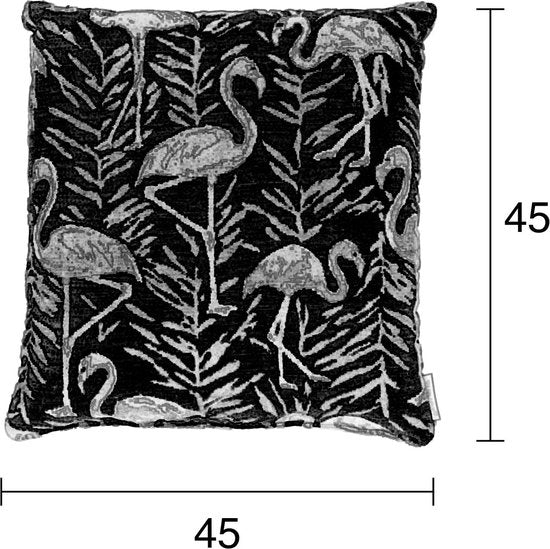- Le coussin Zuiver Kylie a un design frappant avec des flamants roses et des feuilles de palmier à la mode.