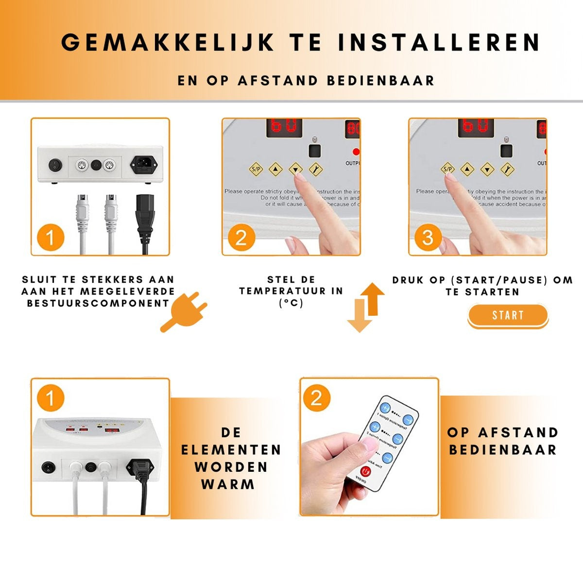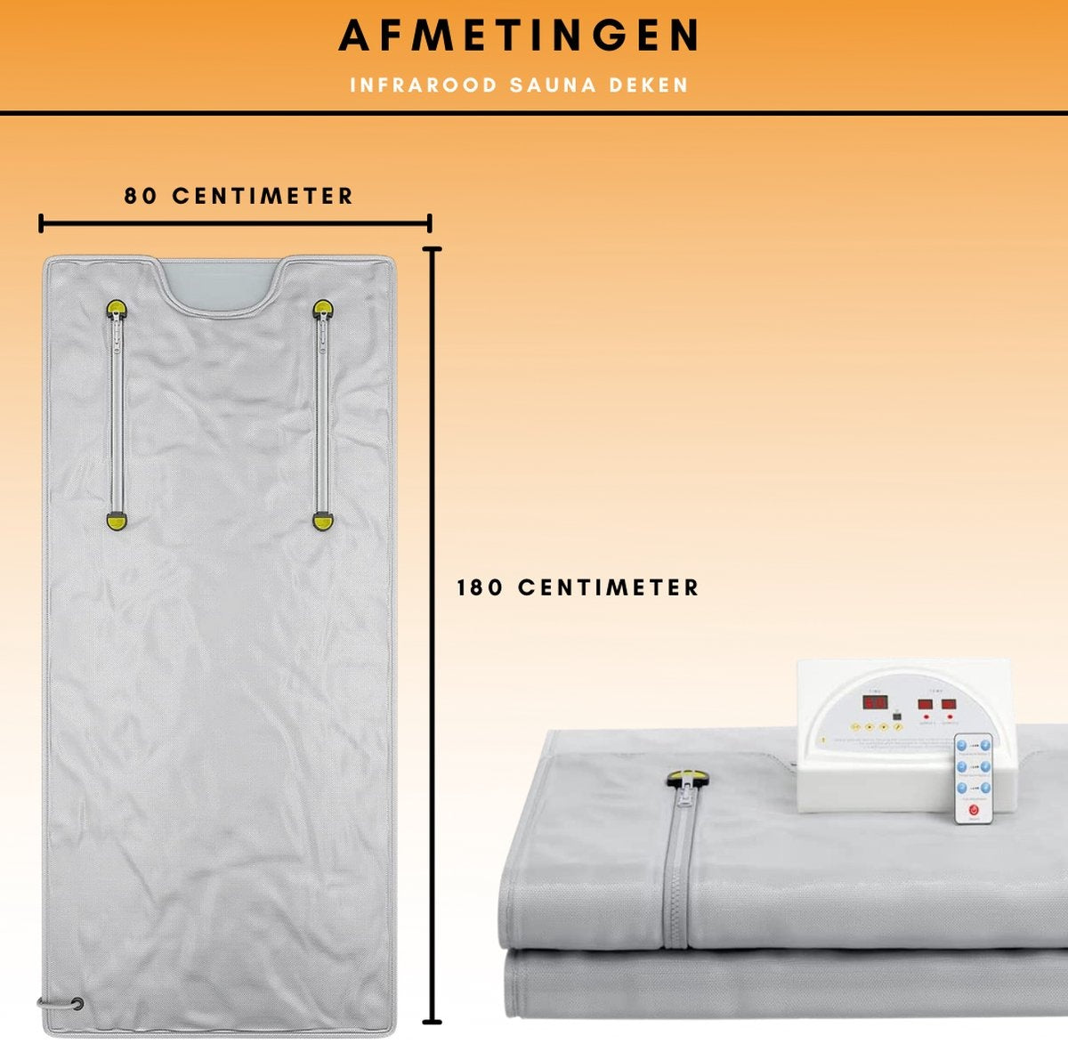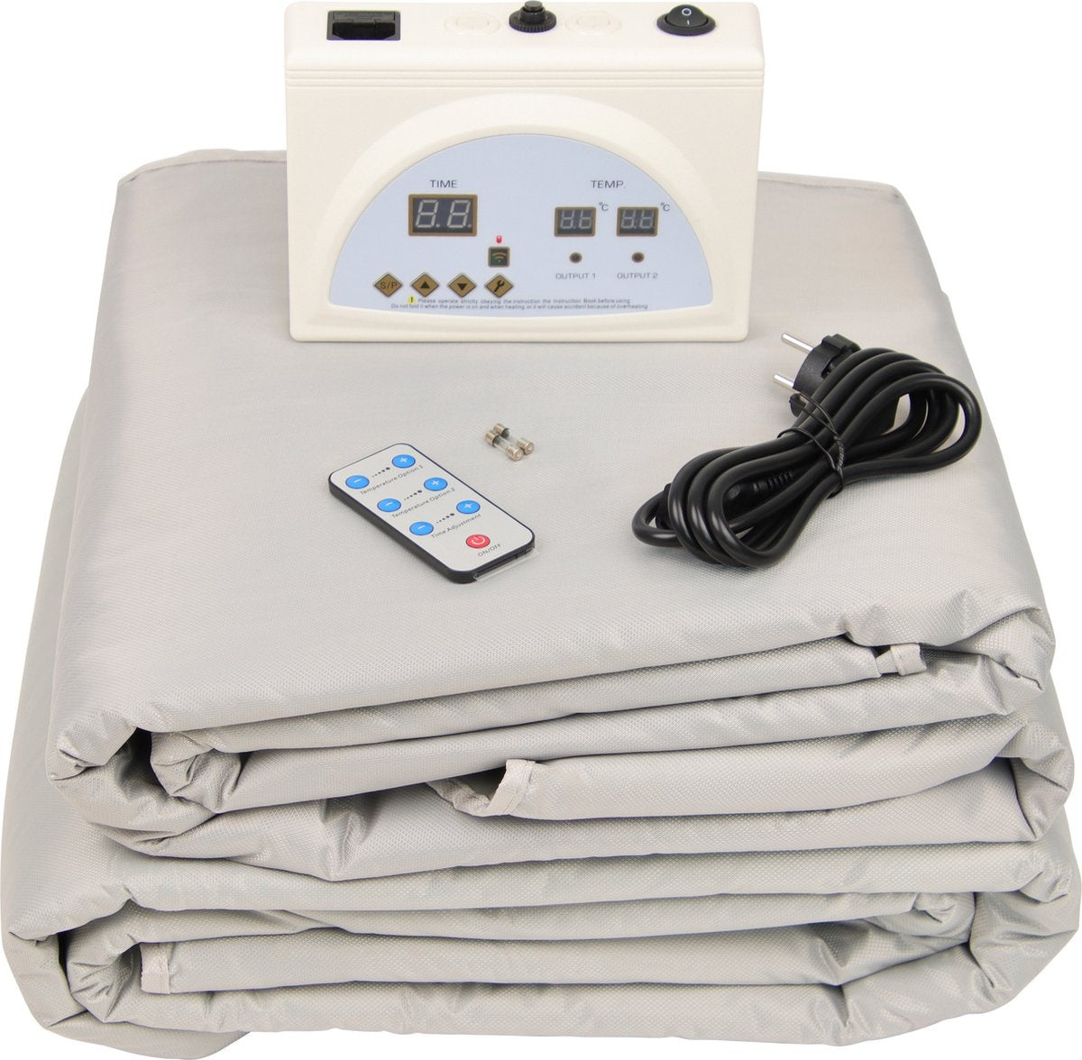 La chaleur est réglable entre 20 et 80 degrés. Il y a deux zones de chaleur qui peuvent être contrôlées séparément. Vous pouvez activer l'avant et l'arrière de la couverture pour la combustion des graisses et/ou la désintoxication. L'appareil comprend quatre thermostats de sécurité pour couper l'alimentation en cas de surchauffe.