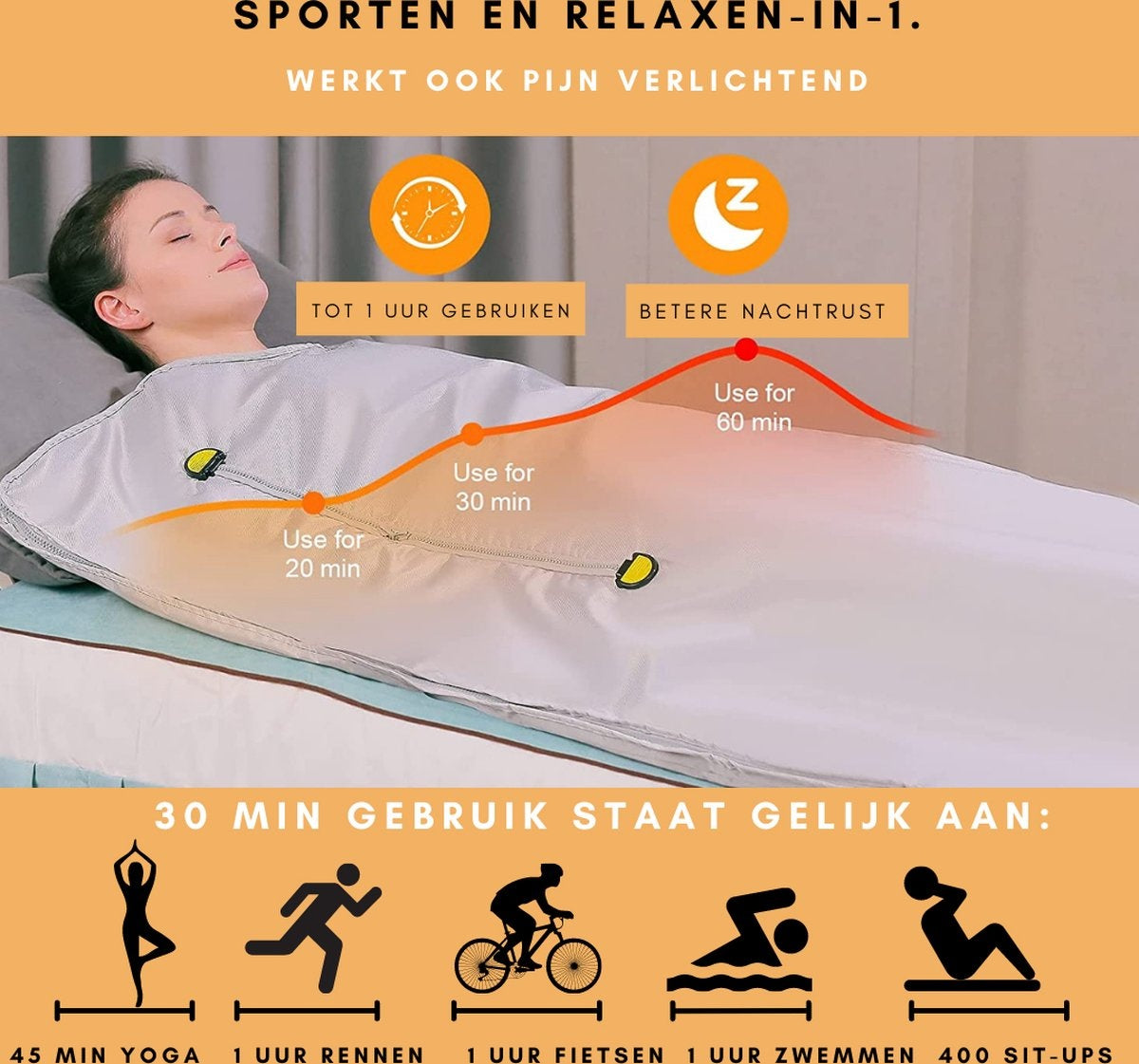 Besoin d'un sauna rapide ? C'est possible ! Procurez-vous la couverture de sauna infrarouge de Niceey et profitez de votre séance de sauna quand vous le souhaitez ! Vous avez fait de l'exercice ou vous avez besoin d'une bonne nuit de sommeil ? 30 minutes dans la couverture de sauna et vous vous détendrez complètement.