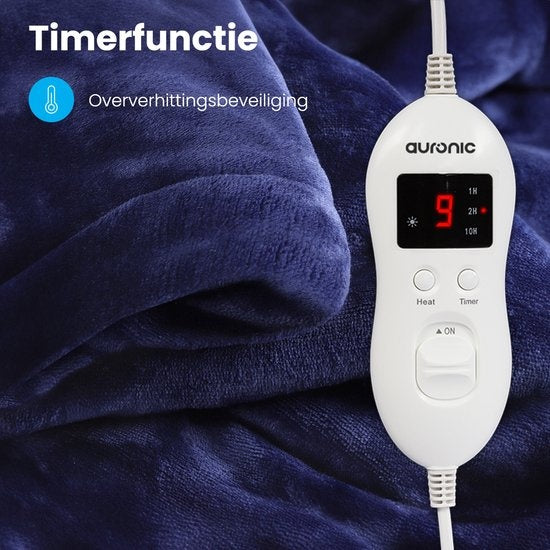 Couverture électrique Auronic - Couverture chauffante - 9 niveaux de chaleur - 2 personnes - 200x150 - Bleu