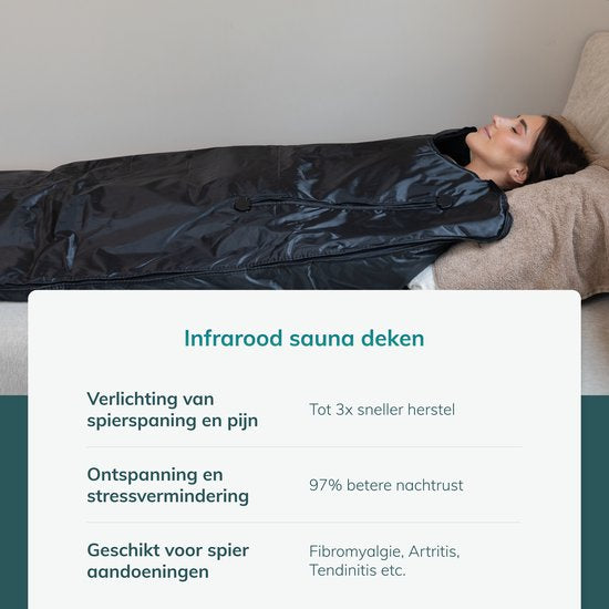 Soulagez les douleurs musculaires et articulaires et profitez d'une détente absolue avec la couverture chauffante infrarouge Soft & Silky. Cette couverture portable offre les bienfaits d’un sauna infrarouge, idéale pour la récupération, le soulagement des douleurs et le bien-être général. Parfaite pour les sportifs, les personnes souffrant de douleurs ou simplement pour un moment de relaxation.