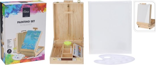 Creat artist - Coffre de peinture en bois 36 pièces - 32x45cm - contenu inclus