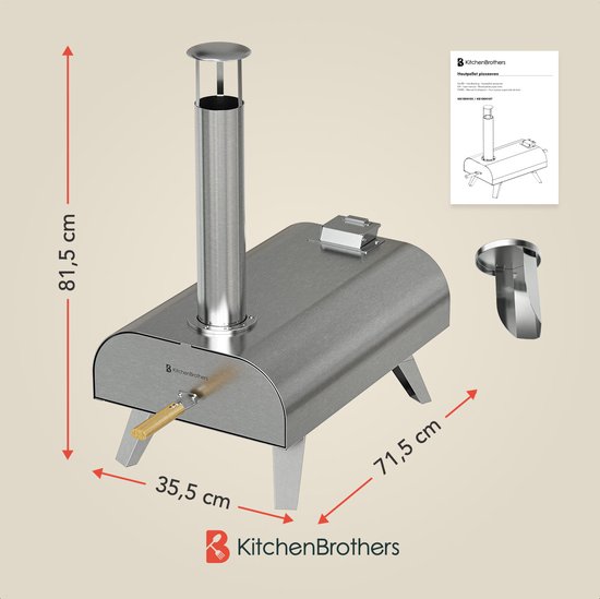 Four à Pizza - KitchenBrothers - Au feu de bois - Pierre à pizza - jusqu'à 460°C - Acier inoxydable - Four à pizza d'extérieur