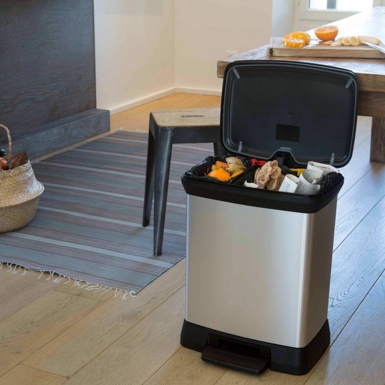 Avec ses doubles seaux internes et sa capacité de 28 litres, cette poubelle est parfaite pour un usage quotidien. Le produit est livré avec des clips de couleur pour faciliter l'identification des seaux intérieurs.