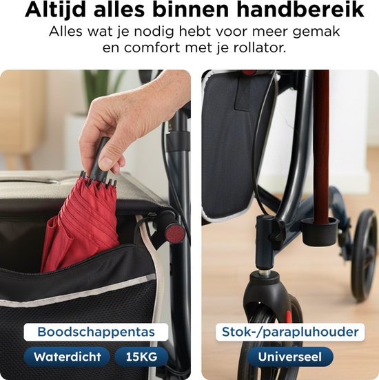 Que vous fassiez vos courses, que vous vous promeniez dans le parc ou que vous ayez simplement besoin de vous reposer sur le pouce, ce rollator s'adapte sans effort à votre routine quotidienne. Vous pouvez le plier d'un simple mouvement et le transporter facilement dans la voiture ou dans les transports en commun.