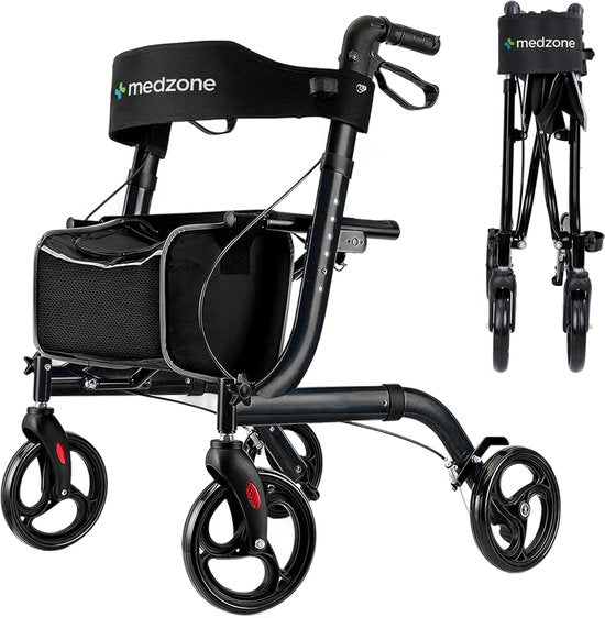 Déambulateur Medzone léger et pliable - intérieur et extérieur - fonction siège - dossier et support pour canne - noir