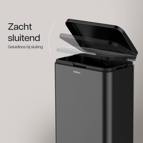 Deleca Trashcan Prestige - 50 Litres - Large - Poubelle / Corbeille à papier / Poubelle à pédale en acier inoxydable - Avec pédale et fermeture lente - Noir mat