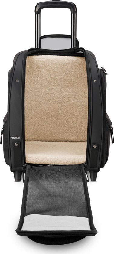 Votre animal de compagnie va adorer le porte-animaux DELSEY PARIS 2R. Le porte-animaux Raspail 2R est idéal pour les sorties avec votre animal de compagnie jusqu'à 15 kilogrammes ! Que vous voyagiez en avion, en train ou en voiture, votre petit compagnon sera entre de bonnes mains dans ce porte-bébé Raspail 2R. La doublure douce, l'espace généreux et les inserts en filet pour une visibilité optimale font de ce porte-animaux 2R un objet de voyage indispensable à tous points de vue. Le sac de transport pour animaux DELSEY PARIS 2R peut être facilement porté à l'aide de la poignée ou, si vous le souhaitez, être tiré grâce au système de trolley. Les deux roues sont très souples et silencieuses. Le matériau imperméable, ainsi que la housse de pluie, gardent votre petit animal en sécurité et au sec par mauvais temps. Les deux languettes à l'avant permettent de fixer la ceinture de sécurité dans la voiture. Un article de voyage pour votre animal de compagnie ne pourrait pas être plus pratique !