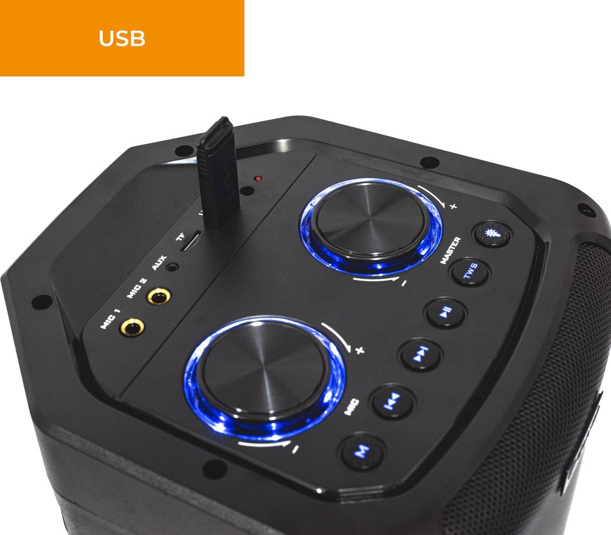 - Polyvalence : Compatible avec USB, carte Micro SD, AUX, et double entrée microphone.