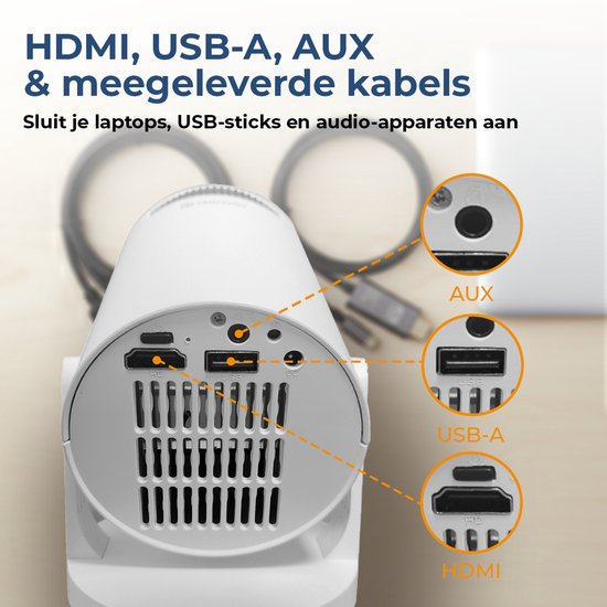Ce mini-projecteur peut projeter des images de 17" à un énorme 120" - parfait pour les soirées cinéma cosy dans le salon ou les présentations d'affaires professionnelles. La mise au point manuelle et la tête de projecteur rotative à 180° permettent d'ajuster facilement l'image à la pièce concernée. Connectez rapidement votre ordinateur portable, votre smartphone ou votre tablette via HDMI ou USB-C et vous êtes prêt à présenter ou à profiter.