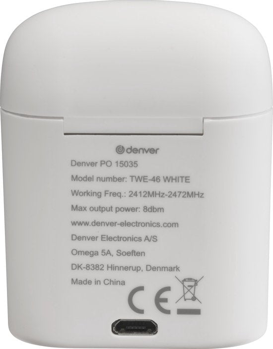 Denver TWE-46 - Earbuds - Wireless - Draadloos Oordopjes - Bluetooth - met oplaad case - handsfree - sporten - headset - In-ear - Bluetooth 5.0 - Wit
