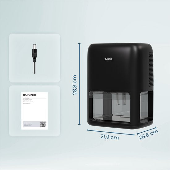 Déshumidificateur Auronic Mini - Convient au salon, au bureau, à la chambre à coucher, à la chambre de bébé et plus encore - Silencieux - Noir