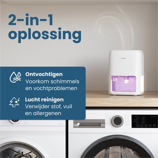 Déshumidificateur Auronic Mini - Convient au salon, au bureau, à la chambre à coucher, à la chambre de bébé et plus encore - Silencieux - Blanc