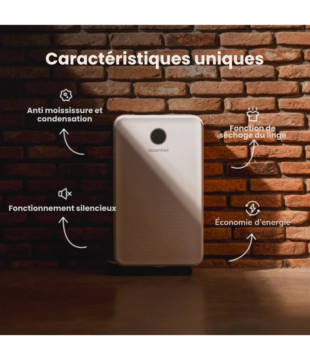 Le déshumidificateur Bloomfold a été conçu dans un souci de commodité, afin que vous puissiez profiter des avantages d'un climat intérieur optimal sans complications.undefined