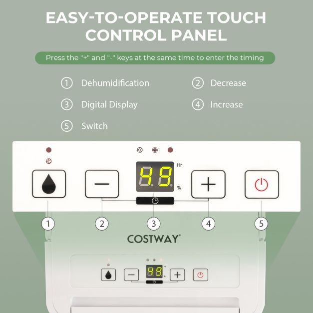 Avec son fonctionnement efficace, ses performances silencieuses et ses fonctions polyvalentes, ce déshumidificateur est parfait pour créer un environnement de vie confortable, sain et sec. Que vous souhaitiez résoudre des problèmes d'humidité ou simplement maintenir un taux d'humidité agréable, cet appareil offre une solution fiable et conviviale. Commandez dès aujourd'hui pour améliorer votre cadre de vie!