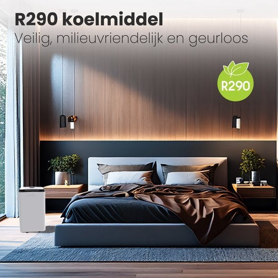 Ce déshumidificateur est équipé d'un réfrigérant efficace (R290), sûr et inodore. L'appareil dispose d'un débit d'air de 360° qui déshumidifie jusqu'à 100 m³ ; par heure. L'une des caractéristiques les plus appréciées est la fonction spéciale lavage-séchage. Cette fonction accélère considérablement le temps de séchage du linge humide à l'intérieur, sans formation d'odeurs de moisi.