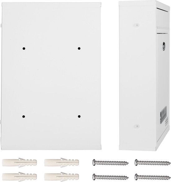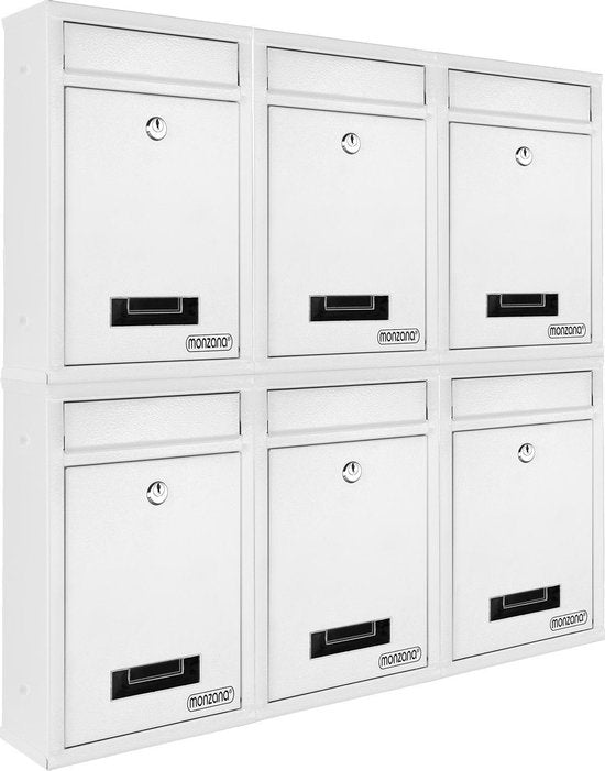 La boîte aux lettres est facile à fixer sur une surface plane à l'aide de 4 vis. 4 vis et 4 chevilles sont incluses dans la livraison. En outre, plusieurs boîtes aux lettres peuvent être assemblées pour former un système de boîtes aux lettres, ce qui rend cette boîte aux lettres idéale pour les complexes d'appartements, les hôtels et les maisons meublées, par exemple.