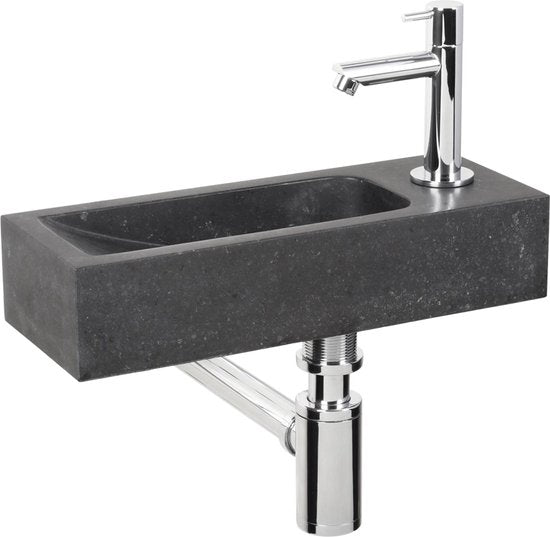 Differnz Fontaine Luxor - Evier en pierre naturelle - Noir - Robinet courbe - Chrome - Poignée standard - 38 x 14 x 8 cm