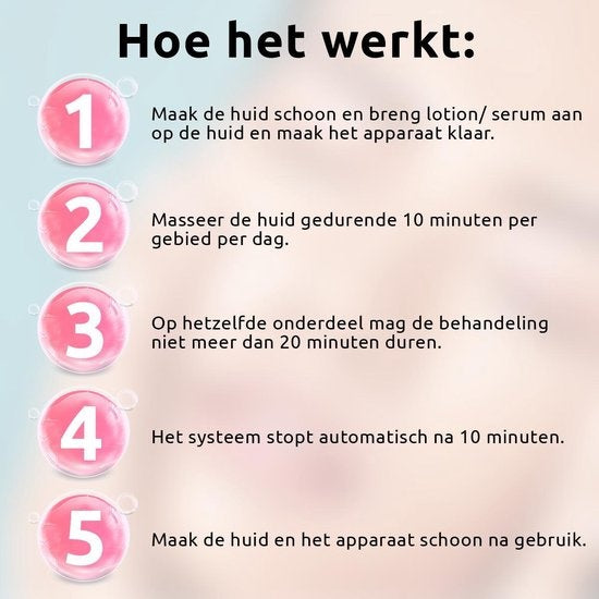 Cet appareil fonctionne grâce à 6 fonctions, vous pouvez les combiner pour obtenir les meilleurs résultats. Cet appareil fonctionne avec la vibration, l'EMS, la radiofréquence, la LED, l'électricité et la mésothérapie. Ces techniques stimulent la peau à produire du collagène.