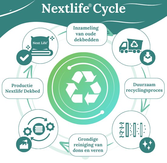 En termes d'hygiène, GreenComfort NEXTLIFE® offre des performances comparables à celles du duvet et des plumes neufs. Ses propriétés hypoallergéniques et respirantes peuvent être détectées dans sa turbidité, un indicateur de pureté. Le processus de nettoyage commence par une présélection minutieuse des matières premières. Les duvets et plumes qui ne répondent pas aux normes de qualité sont exclus de la transformation et utilisés comme engrais organiques pour l'agriculture et l'horticulture. Le duvet et les plumes qui passent la sélection sont soigneusement lavés avec une combinaison d'eau et de savon, séchés et ensuite stérilisés conformément aux directives européennes strictes.