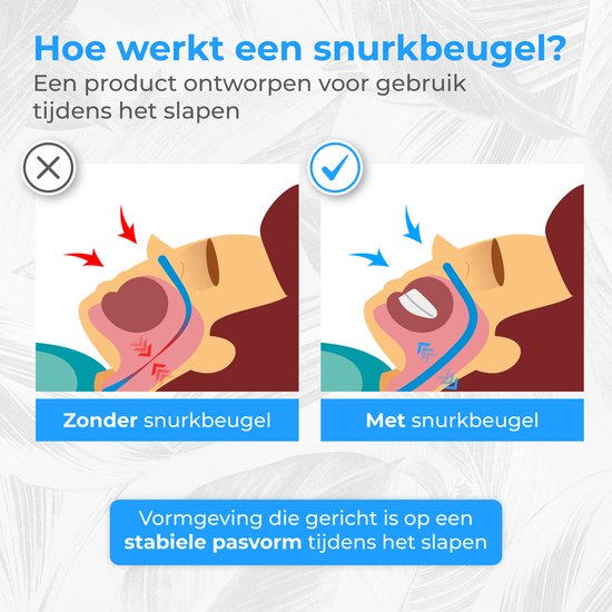 L'orthèse anti-ronflement pro offre non seulement une solution aux ronflements, mais fonctionne également comme une mèche anti-grincement. Cela signifie que l'orthèse protège vos dents des effets du bruxisme pendant le sommeil. Vous bénéficiez ainsi d'une double fonction : une nuit plus calme et une protection contre l'usure des dents causée par le grincement des dents.
