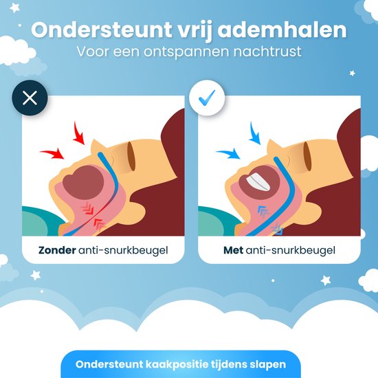 Désagréable avec les grincements de dents pendant la nuit ? Cette orthèse anti-ronflement fonctionne également comme un trépan anti-grincement. Grâce à sa structure souple et à son maintien ferme, votre mâchoire reste détendue, sans se déplacer. Vous contribuez ainsi discrètement à plus de confort et moins de tension pendant la nuit.