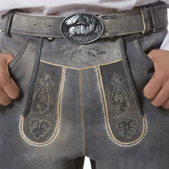 Que vous alliez à la fête du village ou à l'Oktoberfest - le pantalon en cuir Joshua fera une forte impression en toute occasion. Associé à une chemise à carreaux, des haferlschuhen et des loferln, il complétera votre tenue traditionnelle, fabriquée à 100 % en cuir fendu de vache.