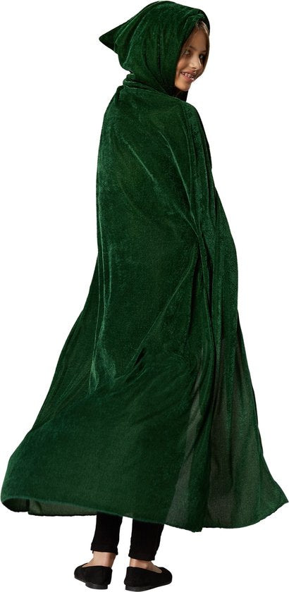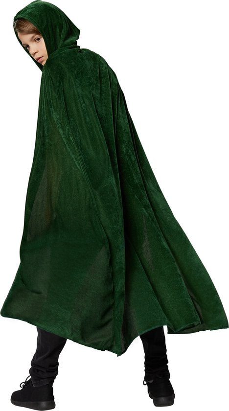 Qui peut bien se trouver à l'intérieur de cette mystérieuse cape verte ? Un esprit de la forêt ? Une jolie fée ? Ou peut-être un joli lutin ? Cette cape peut être combinée avec presque tous les costumes, en leur donnant un aspect spécial et mystique.