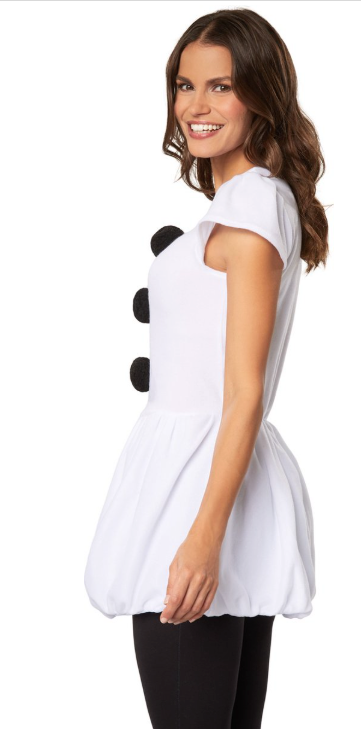 Le DressForFun costume de femme des neiges est fabriqué dans une matière pelucheuse blanche de haute qualité qui non seulement donne un " aspect neige " authentique, mais est aussi merveilleusement douce au toucher. La robe comporte trois gros boutons décoratifs noirs sur la poitrine, qui rappellent immédiatement un bonhomme de neige classique. Grâce à la conception sans manches de la robe, le costume est excellent à combiner avec une chemise blanche à manches longues pour vous garder au chaud même pendant les jours froids du carnaval.