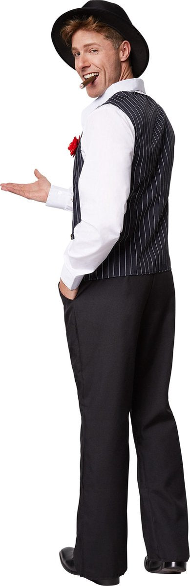 Le costume de charleston pour homme se compose d'une chemise, d'une veste à carreaux, d'une fleur artificielle attachée et d'un pantalon long. Le chapeau complète le déguisement. Matière : 100 % polyester. Le costume de charleston pour homme vous transformera en danseur passionné. Choisissez la femme de votre cœur et invitez-la sur la piste de danse. Avec la chemise blanche rayonnante, le gilet à fines rayures et l'élégant pantalon noir, aucune dame ne pourra vous résister. Vivez des moments inoubliables lors d'un carnaval ou d'une fête à thème avec ce charmant costume de charleston pour homme. Points forts : Chemise à manches longues Pantalon chic Gilet à rayures en aiguille Le clou du gilet : de beaux boutons et des fleurs artificielles Chapeau mignon inclus Remarques Les chaussures et le faux cigare ne sont pas inclus.