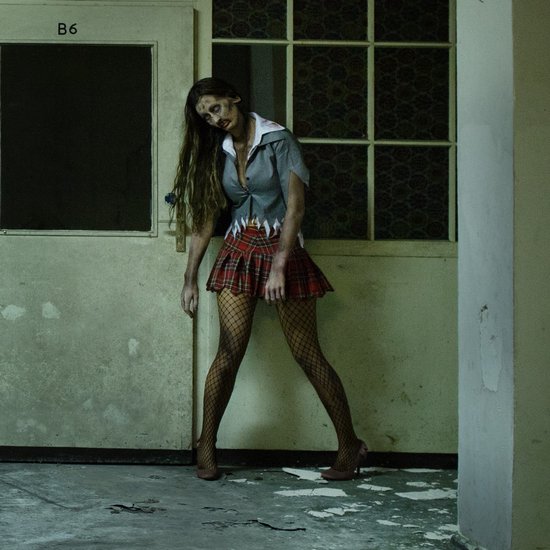 Le costume de zombie sexy pour femme se compose d'une veste élégante, d'un chemisier attrayant et d'une jupe courte excitante. En outre, des bas sexy et une écharpe assortie sont inclus.
