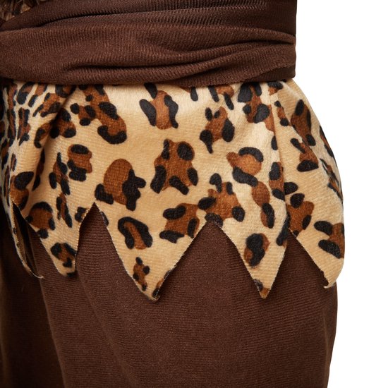 Ce costume de garçon sauvage de l'âge de pierre comprend une paire de pantalons longs unicolores avec une taille élastiquée et un gilet sans manches avec un motif de patch. Par-dessus, un gilet supplémentaire en fausse fourrure et deux ceintures diagonales en daim sont portés. Une large ceinture à nouer et deux manchettes à élastiques sont également incluses. Matière : 100 % polyester.