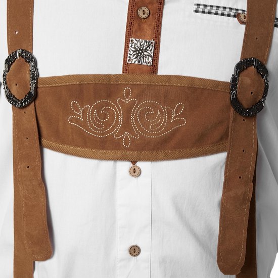 L'élégant lederhosen Steigerwald, qui descend jusqu'au genou, se présente dans un design sophistiqué, en parfaite adéquation avec la devise : " Less is more ". Le motif de couture discret laisse mieux ressortir les différents éléments, comme le protège-entrejambe magnifiquement conçu ou la poche à couteau classique sur le côté droit. Les lanières de cuir à l'arrière et sur les jambes du pantalon permettent un réglage précis de la largeur et ajoutent une touche intéressante aux lederhosen Steigerwald, fabriquées en 100 % polyester.