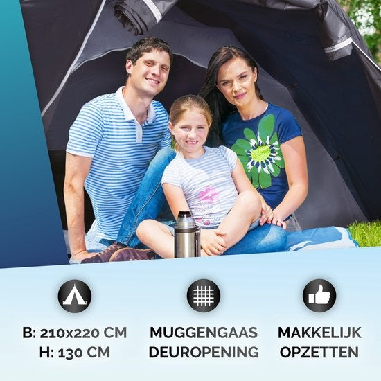 Cette tente pour 3 personnes, facile à monter, est idéale pour le camping, mais aussi pour les festivals. La tente dôme se compose d'une tente intérieure et d'une tente extérieure : la tente intérieure offre suffisamment d'espace pour que 3 personnes puissent s'allonger confortablement, et la tente avant peut facilement accueillir vos bagages. Grâce à ses arceaux flexibles et autoportants, la tente se monte en un rien de temps. Grâce à son matériau en nylon robuste, la tente dôme ne craint pas les coups. En effet, des tests en soufflerie montrent qu'elle peut résister à des vents de 40km/h (5Bft). En outre, la tente 3 places est étanche jusqu'à 200 mm d'eau/h/m2. C'est à peu près l'équivalent d'une pluie tropicale. La tente extérieure est fabriquée en nylon 190T et l'intérieur en nylon 170T. Cela rend la tente dôme respirante et donc parfaite pour les chaudes journées d'été. Spécifications Tente Dunlop 3 personnes Marque : Dunlop Dimensions intérieures de la tente : 190x200 cm Facile à monter avec des arceaux flexibles Hauteur utile maximale : 118 cm Résiste à des vents de 40 km/h (5 Bft) Imperméabilité 200mm eau/h/m2 Ventilation arrière Coutures étanchées Parfaite pour les festivals et le camping