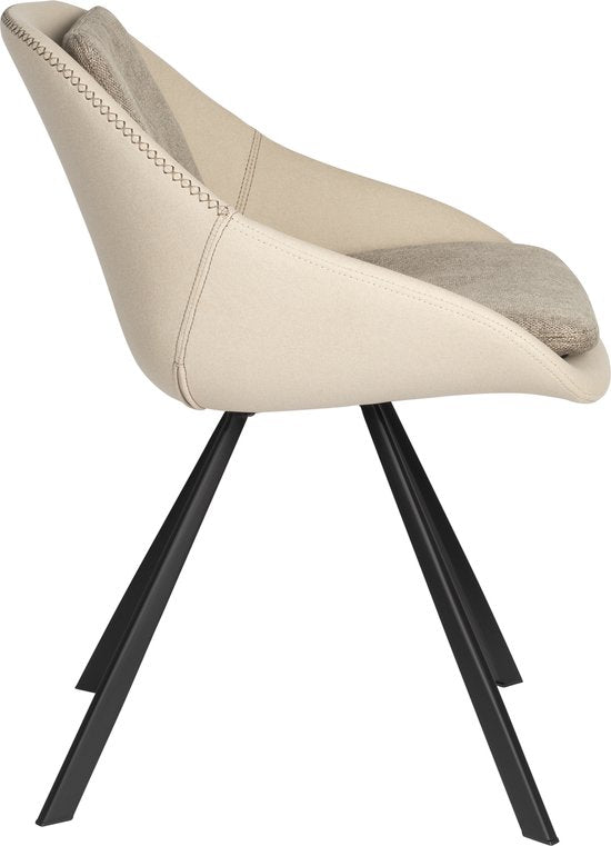 Vous aimeriez savourer de délicieux repas en agréable compagnie tout en restant détendu à table ? Vous pouvez créer l'atmosphère parfaite avec le Dutchbone Wakefield. La coque confortable et rembourrée de cette chaise est conçue de manière ergonomique pour un confort d'assise durable. Grâce aux coussins inclus, qui se fixent facilement à l'aide d'une bande velcro, la chaise est encore plus luxueuse. Ces coussins sont recouverts d'un tissu différent dans une teinte plus foncée, ce qui donne un effet unique. Associés aux pieds noirs, ils créent un contraste élégant. Les solides coutures de baseball le long du bord de la baignoire complètent le look et donnent à la chaise un caractère supplémentaire.