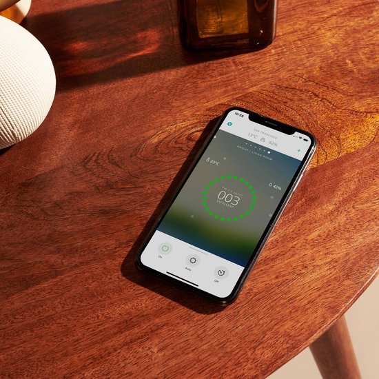 Wifi-enabled Bright vous permet d'utiliser l'application gratuite Duux sur votre smartphone comme télécommande pour surveiller la qualité de l'air et ajuster les paramètres. Vous pouvez également utiliser l'écran tactile convivial avec des indicateurs LED lumineux ou activer des assistants vocaux tels qu'Amazon Alexa ou Google Assistant pour contrôler votre Bright.