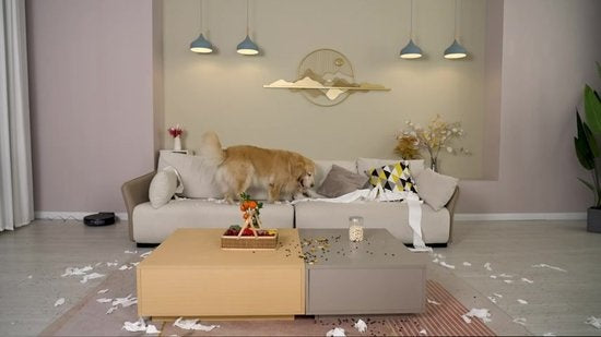 Convient aux animaux domestiques: Grâce à sa puissante fonction d'aspiration et de nettoyage, ce robot aspirateur est parfait pour les ménages ayant des animaux domestiques. Il élimine sans effort les poils d'animaux et garde vos sols propres et frais sans que vous ayez à passer l'aspirateur vous-même.